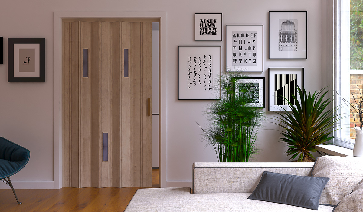 Porta a soffietto chiusura laterale o centrale, minimo ingombro, realizzata su misura.